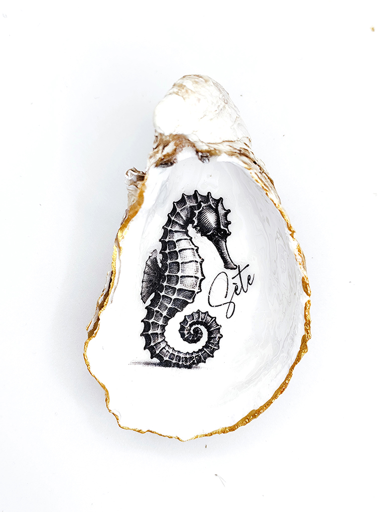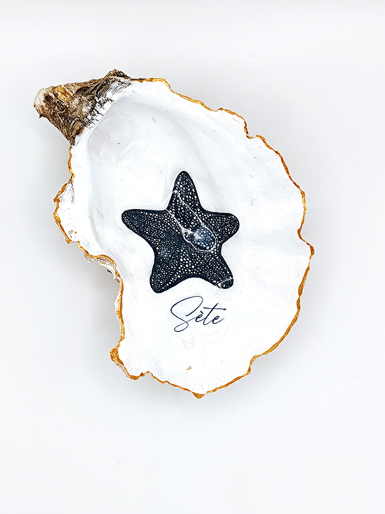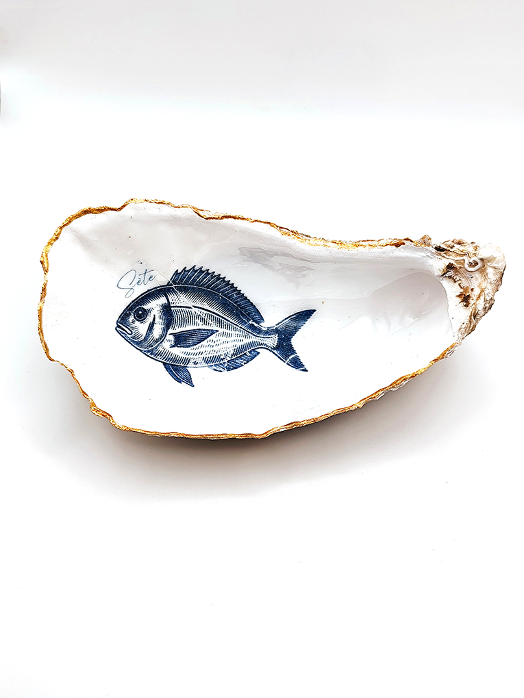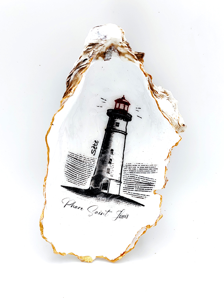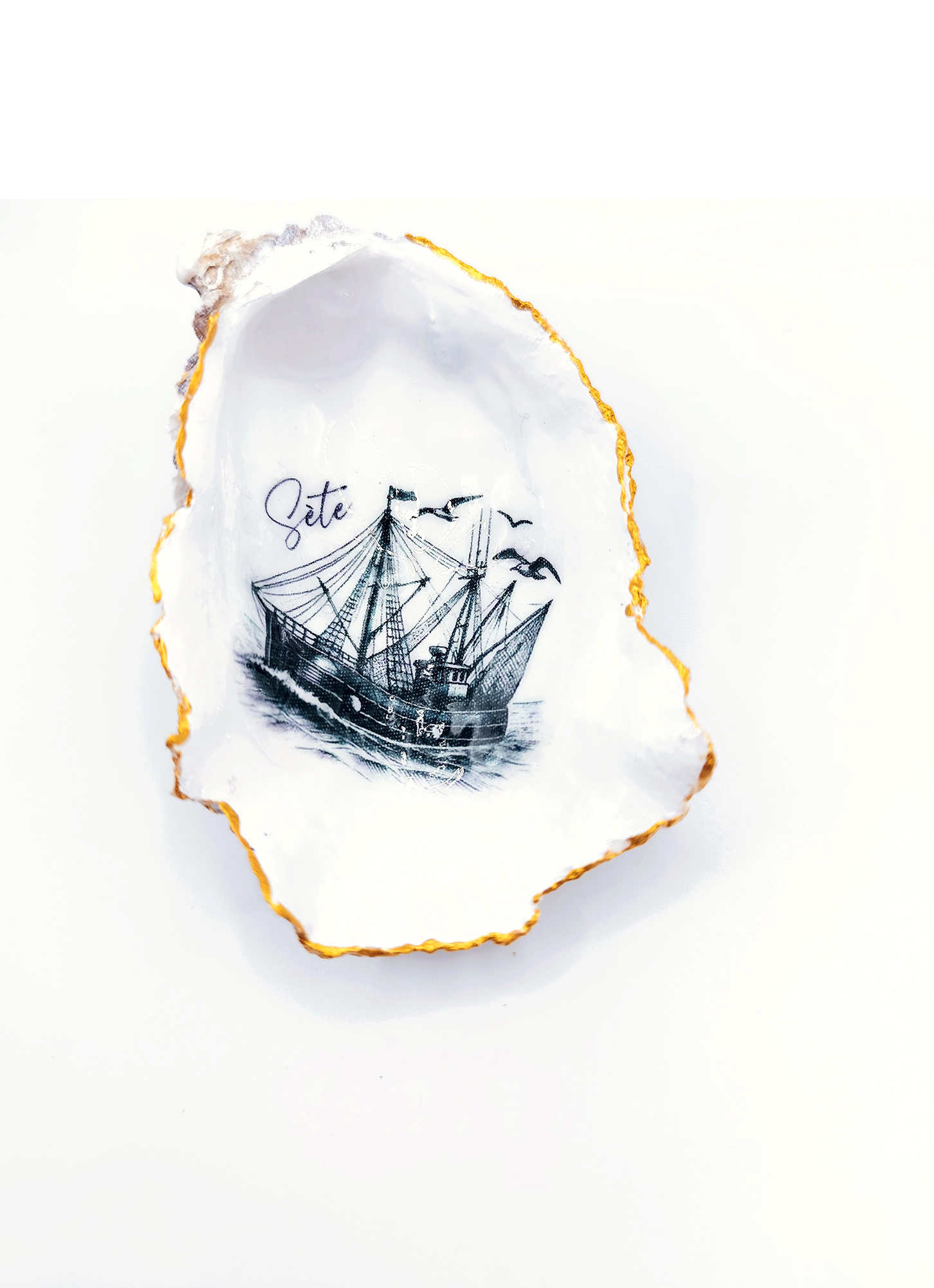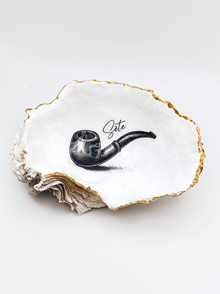 Découvrez la série des huitres décorées mettant en valeur les symboles de Sète et de l’Etang de Thau. Chaque pièce, illustre un élément emblématique : le phare de Sète, l’hippocampe symbole de la lagune de Thau, le poulpe utilisé dans la cuisine locale ou encore la pipe, référence discrète à Georges Brassens. Cette collection est commercialisée à l’Office du Tourisme de Sète mais également dans d’autres boutiques de la ville. Notez que chaque boutique possède des éléments différents. Il est a noter que tous les modèles d’huitres ne sont pas forcement photographiés.