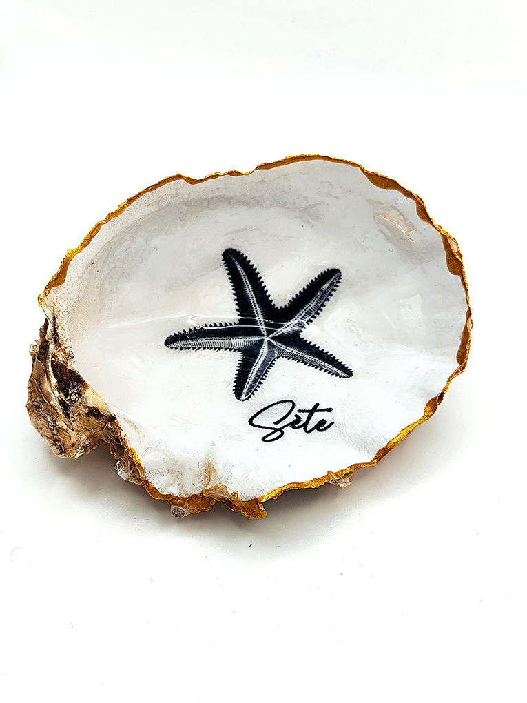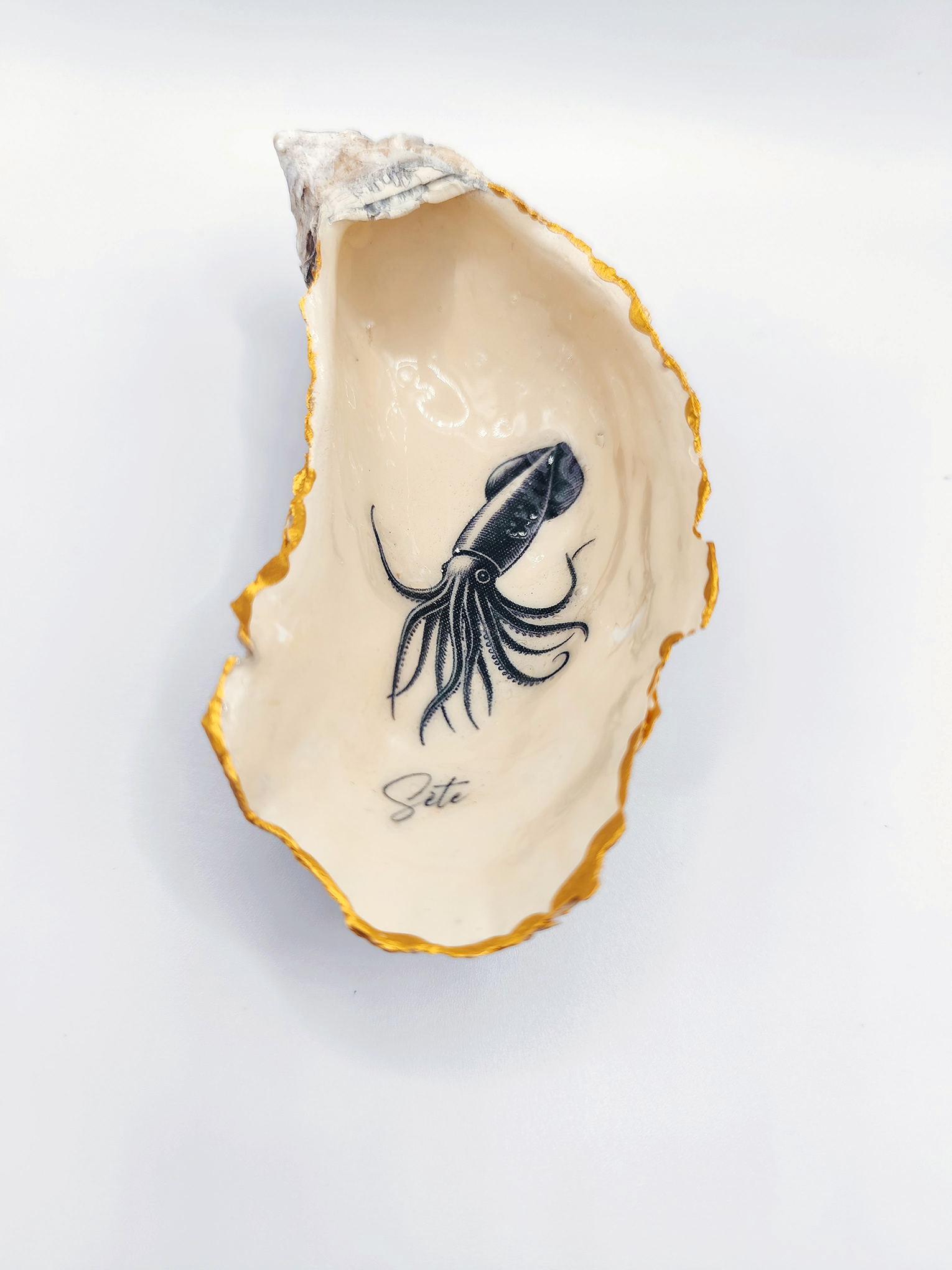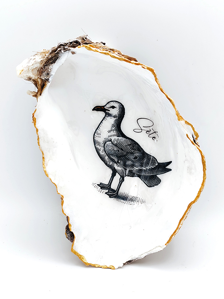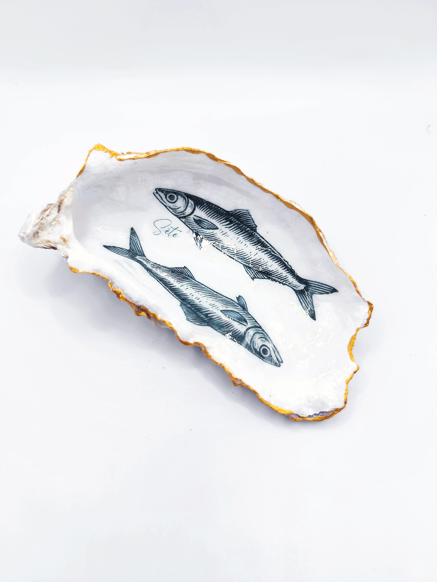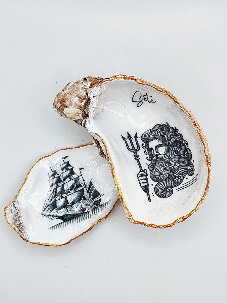 Découvrez la série des huitres décorées mettant en valeur les symboles de Sète et de l’Etang de Thau. Chaque pièce, illustre un élément emblématique : le phare de Sète, l’hippocampe symbole de la lagune de Thau, le poulpe utilisé dans la cuisine locale ou encore la pipe, référence discrète à Georges Brassens. Cette collection est commercialisée à l’Office du Tourisme de Sète mais également dans d’autres boutiques de la ville. Notez que chaque boutique possède des éléments différents. Il est a noter que tous les modèles d’huitres ne sont pas forcement photographiés.